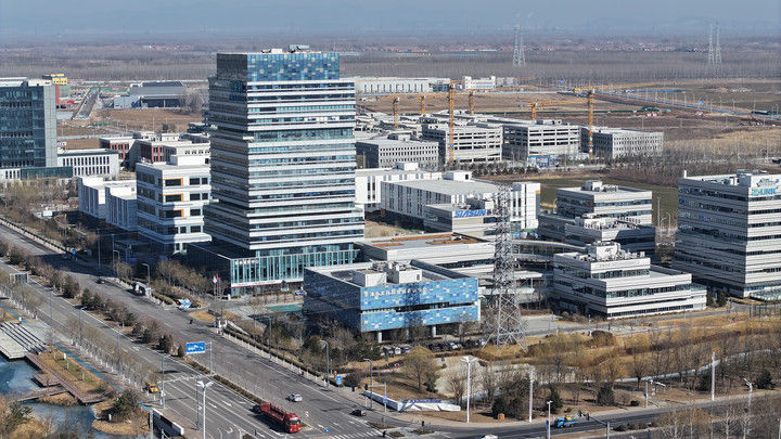 這是2月24日拍攝的京津中關(guān)村科技城(無人機(jī)照片)。京津中關(guān)村科技城自2017年正式破土動工以來,已累計注冊市場主體1800余家,2024年稅收同比增長13%,固定資產(chǎn)投資同比增長31.8%,規(guī)上工業(yè)產(chǎn)值同比增長62%。新華社記者 李然 攝