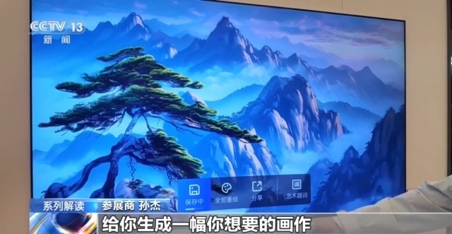 參展商 孫杰:只要說出你想要的畫面內(nèi)容,它就會很短的時間給你生出一幅你想要的畫作。既可以作為自己的畫作在電視上欣賞,也可以通過微信掃碼復(fù)制到電腦手機(jī)上作為桌面。