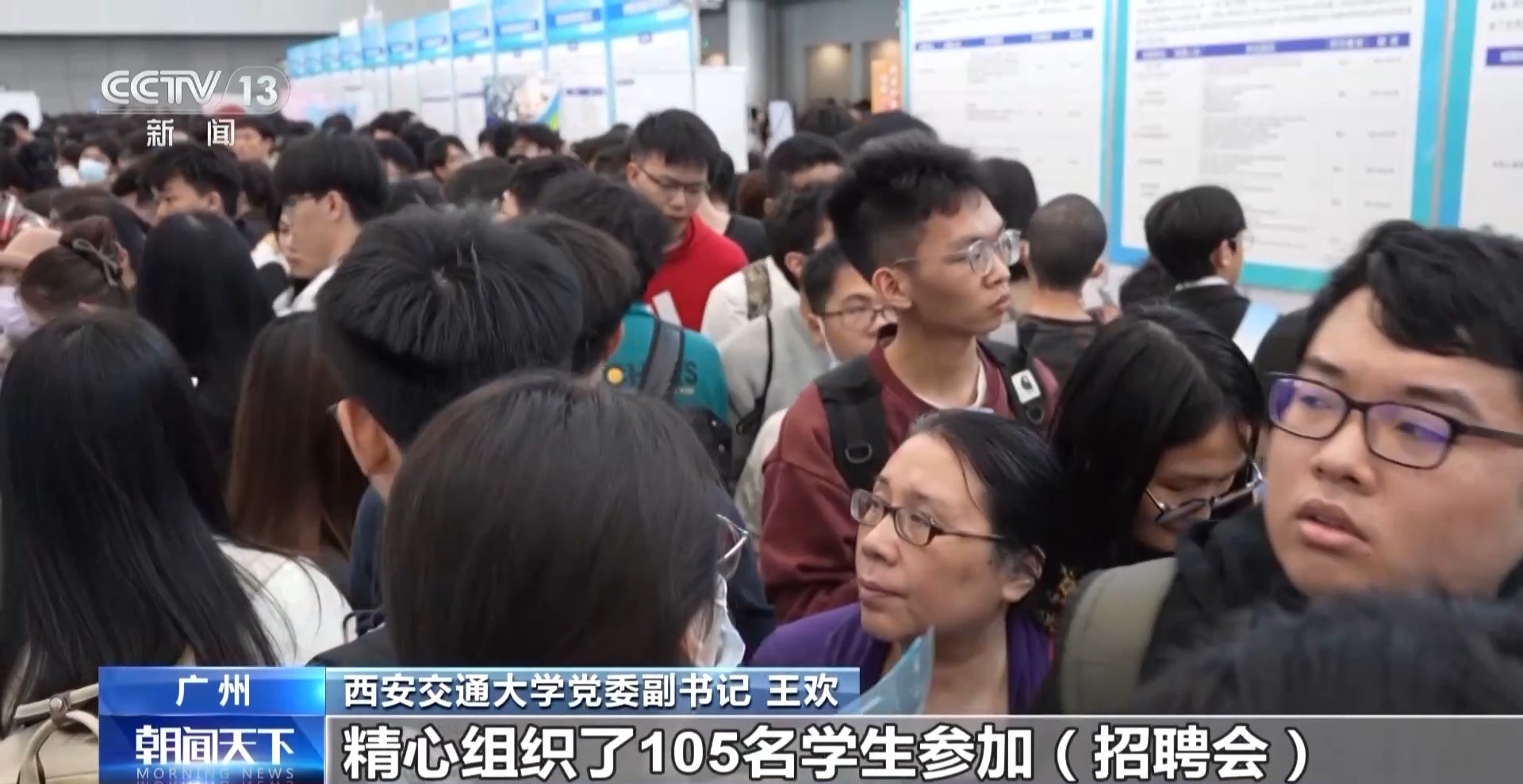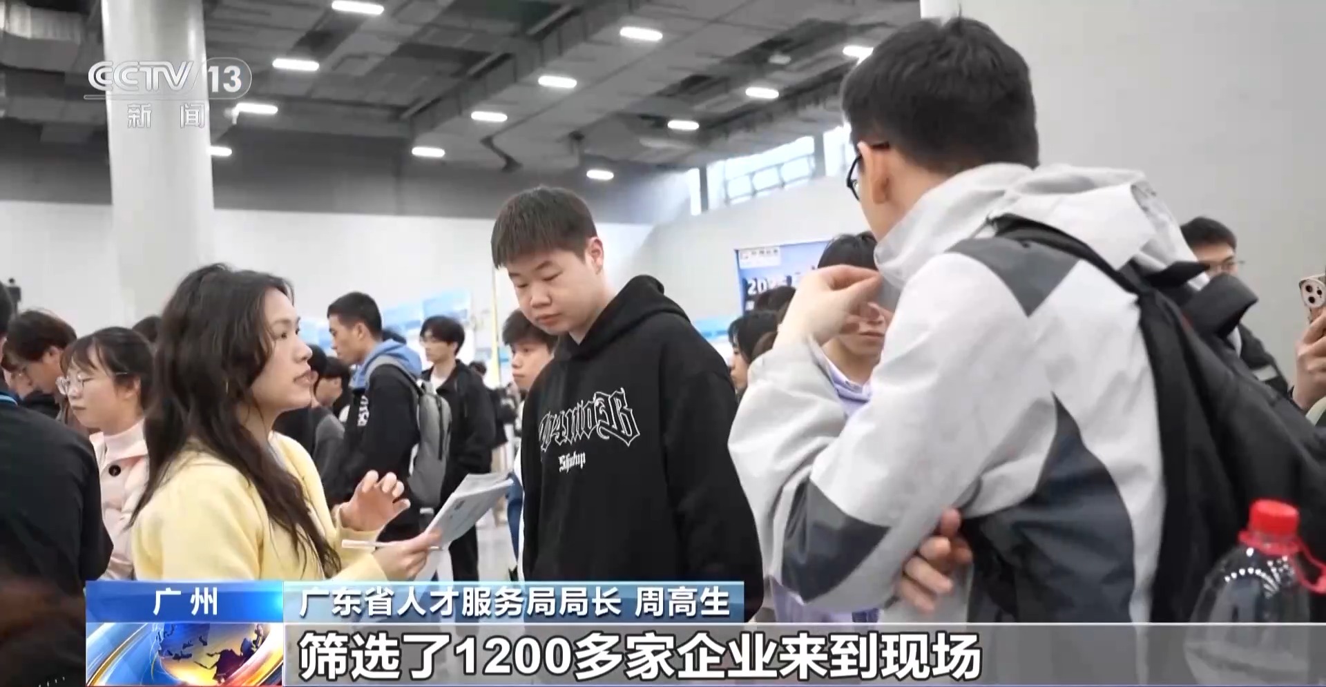 總臺央視記者 唐蕾:在廣州市琶洲廣交會展館,和往年比,今年春招規(guī)模擴(kuò)大了近3倍,在這里,不僅有一站式的招聘會,還有人工智能與機(jī)器人專場項(xiàng)目對接會等多種人才對接活動。