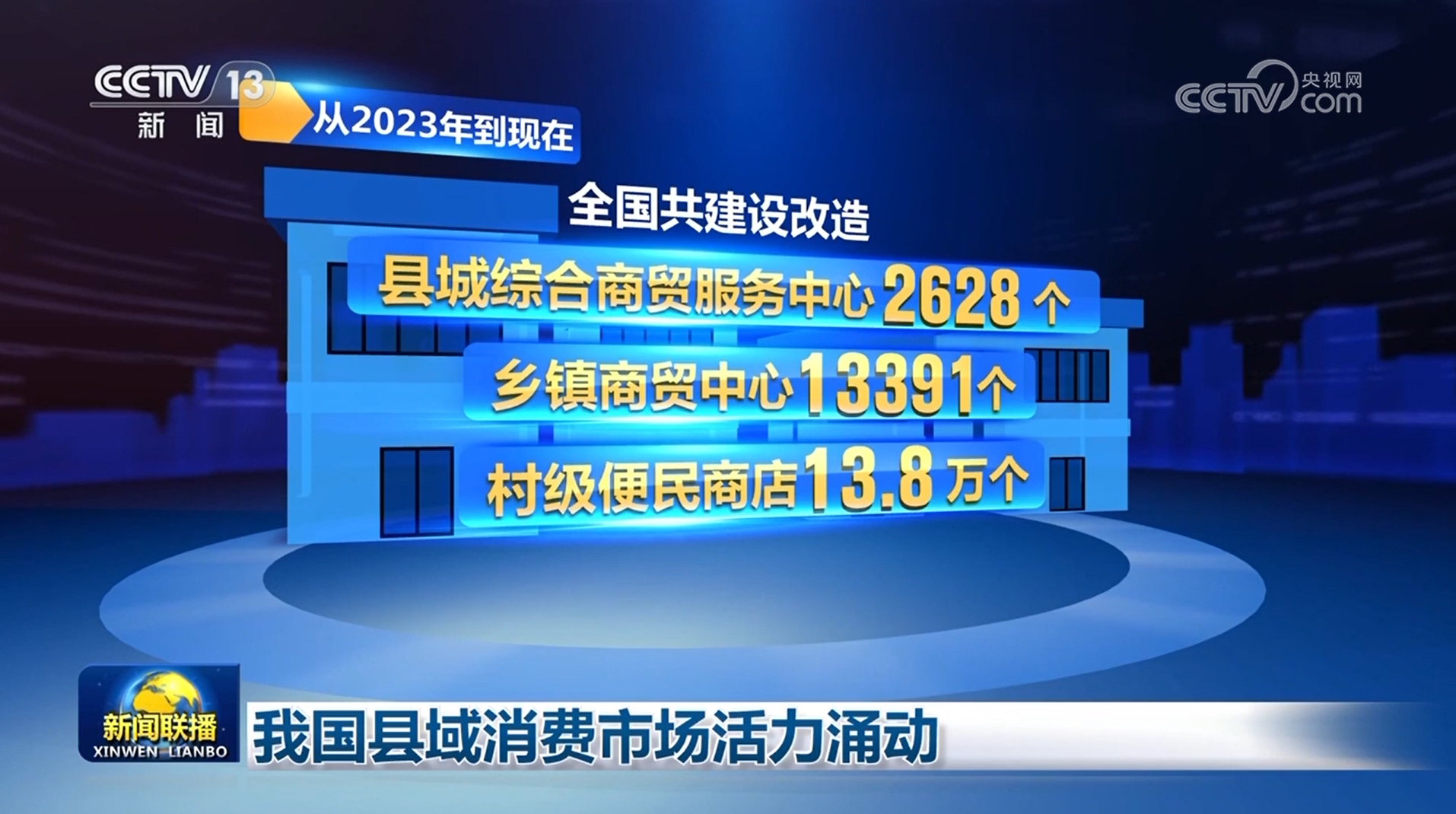 商務部數(shù)據(jù)顯示,從2023年到現(xiàn)在,全國共建設改造縣城綜合商貿(mào)服務中心2628個、鄉(xiāng)鎮(zhèn)商貿(mào)中心13391個、村級便民商店13.8萬個。