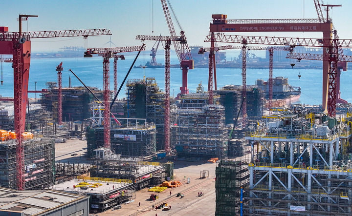 這是3月21日拍攝的天津博邁科海洋工程股份有限公司廠區(qū)一景(無(wú)人機(jī)照片)。新華社記者 趙子碩 攝