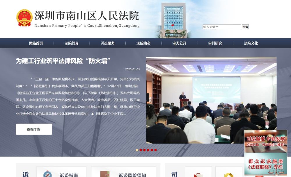 圖為深圳市南山區(qū)人民法院官網(wǎng)。