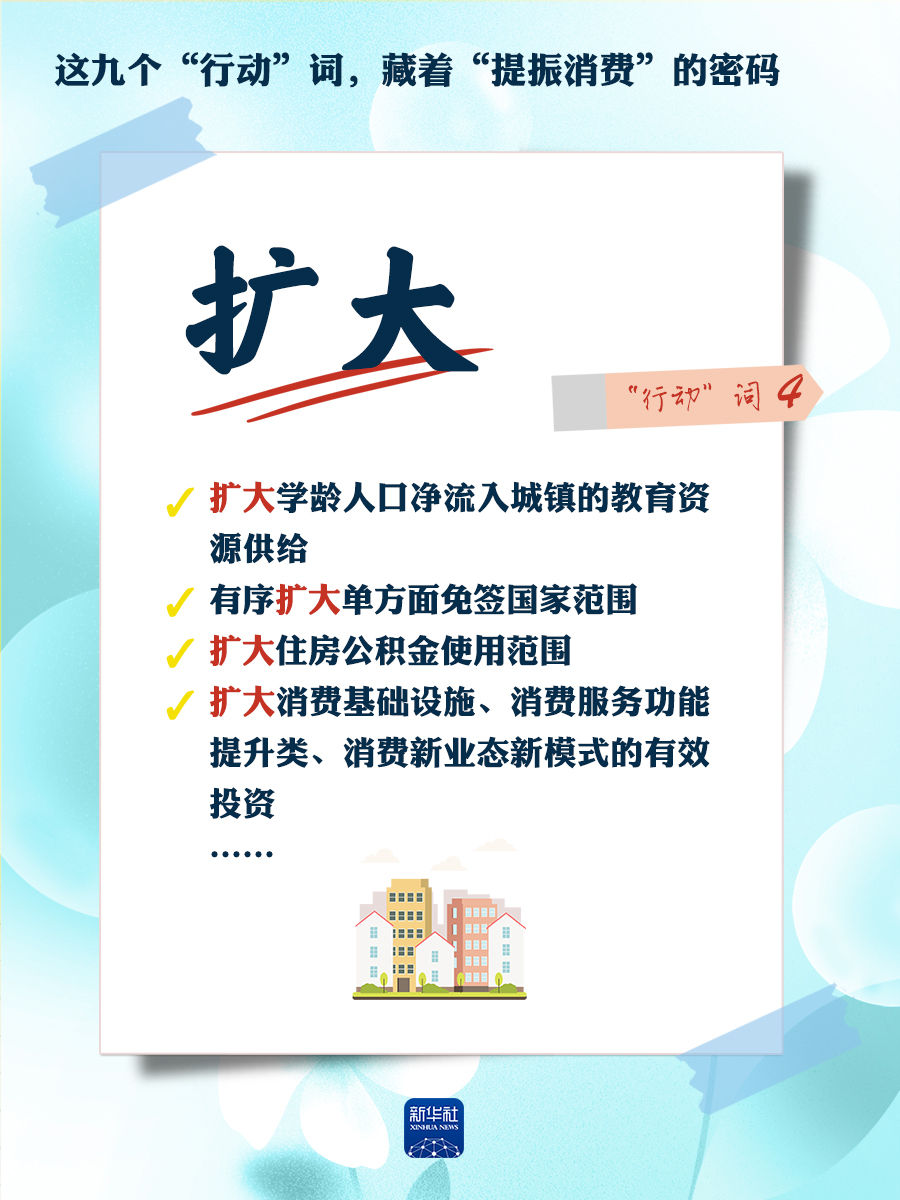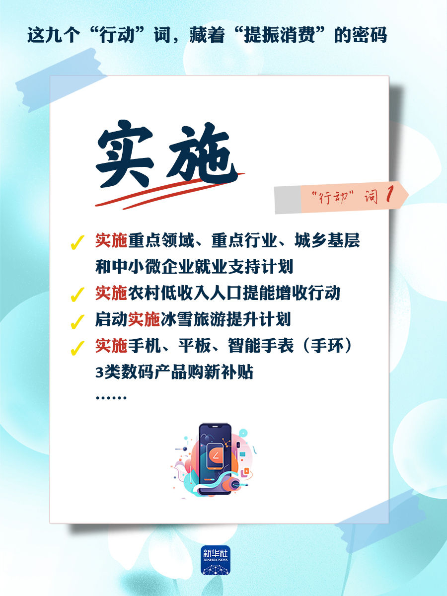 我們梳理出“方案”中使用頻率較高的九個(gè)“行動(dòng)”詞,從這些不同維度的“行動(dòng)”詞中,解讀“專項(xiàng)行動(dòng)”的豐富內(nèi)涵和政策“含金量”,看看哪些是立竿見(jiàn)影、吹糠見(jiàn)米的惠民行動(dòng)?哪些是需要加力擴(kuò)圍、加快補(bǔ)齊的消費(fèi)短板?還有哪些是需要有序推進(jìn)、以點(diǎn)帶面的消費(fèi)“新”點(diǎn)?
