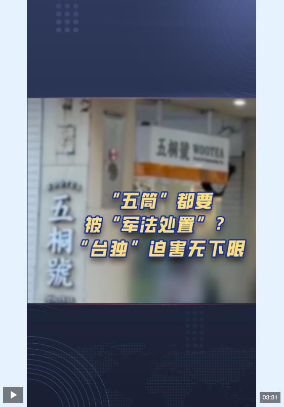 最近一段時間,民進黨當(dāng)局打壓迫害島內(nèi)支持兩岸和平發(fā)展人士的行為,已經(jīng)到了喪心病狂的地步,甚至有家奶茶店因為叫“五桐號”,而被綠營抵制說是在諧音“武統(tǒng)好”,難怪有人諷刺:如今的臺灣,打麻將說“五筒”都會被“軍法處置”。有島內(nèi)輿論指出,賴清德違逆民意拋出“17項策略”,是“戒嚴(yán)再起、‘臺獨’叫陣”,是“綠色恐怖執(zhí)政”。臺灣社會各界也紛紛表達不滿: