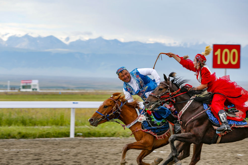 2024年7月10日,新疆代表團(tuán)運(yùn)動(dòng)員在新疆昭蘇參加表演項(xiàng)目競(jìng)技類“姑娘追”比賽。新華社記者 陳朔 攝
