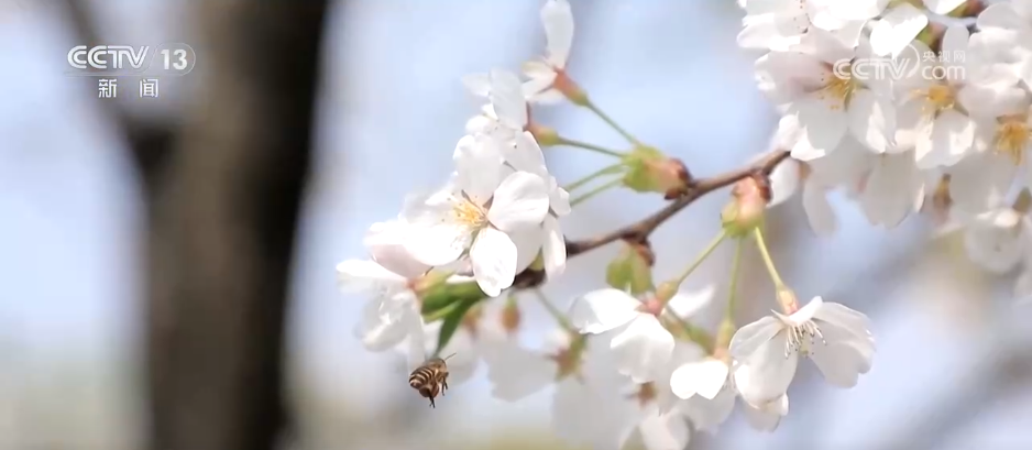 景區(qū)內(nèi)整排的櫻花綿延綻放,形成了一片粉白色的花海。微風(fēng)拂過(guò),粉白的花瓣隨風(fēng)飄舞,游客們漫步在櫻花樹(shù)下,拿出手機(jī)、相機(jī),記錄這春日好風(fēng)景。