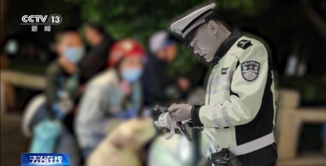 在執(zhí)法現(xiàn)場(chǎng)視頻中,已近凌晨1點(diǎn),鏡頭記錄下了許允若最為平常的不眠之夜。32年的交警生涯,像這樣的不眠之夜數(shù)也數(shù)不清,1萬多天的早晚高峰,每天10個(gè)小時(shí)在路上,他是那個(gè)永遠(yuǎn)在路上的人。