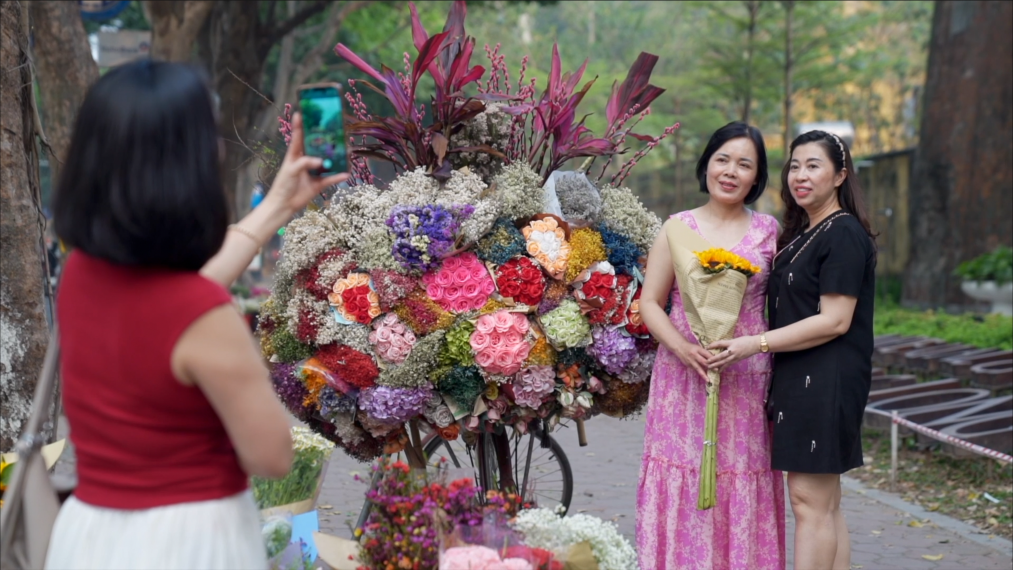 越南首都河內(nèi)是一座愛花的城市,以自行車或摩托車為貨架的“鮮花巴士”遍布大街小巷,成為這座城市獨特的風景線。