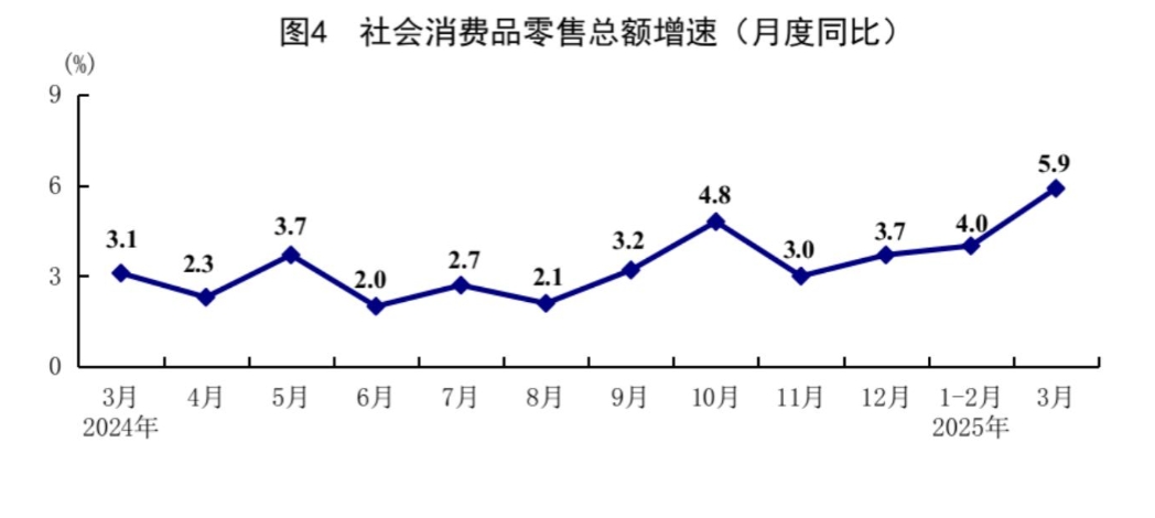 去年9月26日,中央政治局會(huì)議果斷部署了一攬子增量政策,對(duì)穩(wěn)定經(jīng)濟(jì)發(fā)揮了關(guān)鍵作用。今年我國(guó)宏觀政策更加積極有為,前期出臺(tái)的宏觀政策和持續(xù)擴(kuò)容加碼的增量政策疊加發(fā)力,有效擴(kuò)大了需求、促進(jìn)了生產(chǎn)、激發(fā)了活力、增強(qiáng)了信心。3月份,社會(huì)消費(fèi)品零售總額同比增長(zhǎng)5.9%,增速創(chuàng)一年來新高。