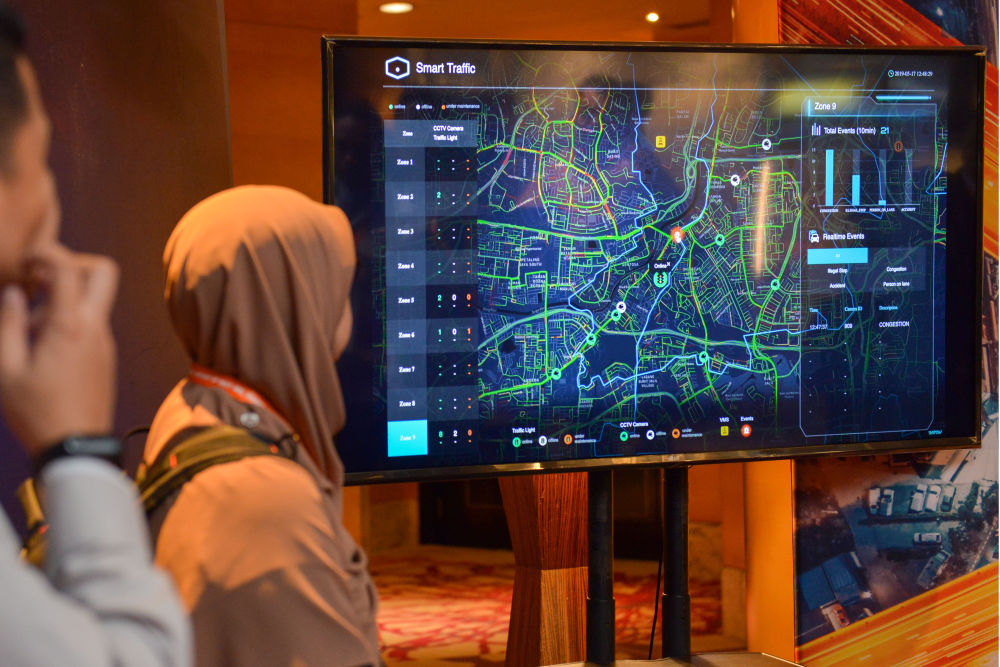 2019年,中國(guó)阿里巴巴集團(tuán)旗下云計(jì)算及人工智能科技公司阿里云宣布與馬來西亞智能交通公司“塞納交通系統(tǒng)”合作,在馬來西亞共同打造智能交通管理系統(tǒng)。這是2019年5月23日在吉隆坡拍攝的智能交通管理系統(tǒng)演示現(xiàn)場(chǎng)。