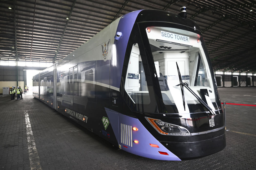 2023年,由中車株洲電力機(jī)車研究所有限公司自主研發(fā)制造的氫能源智軌電車在馬來西亞沙撈越州古晉市開啟試跑。