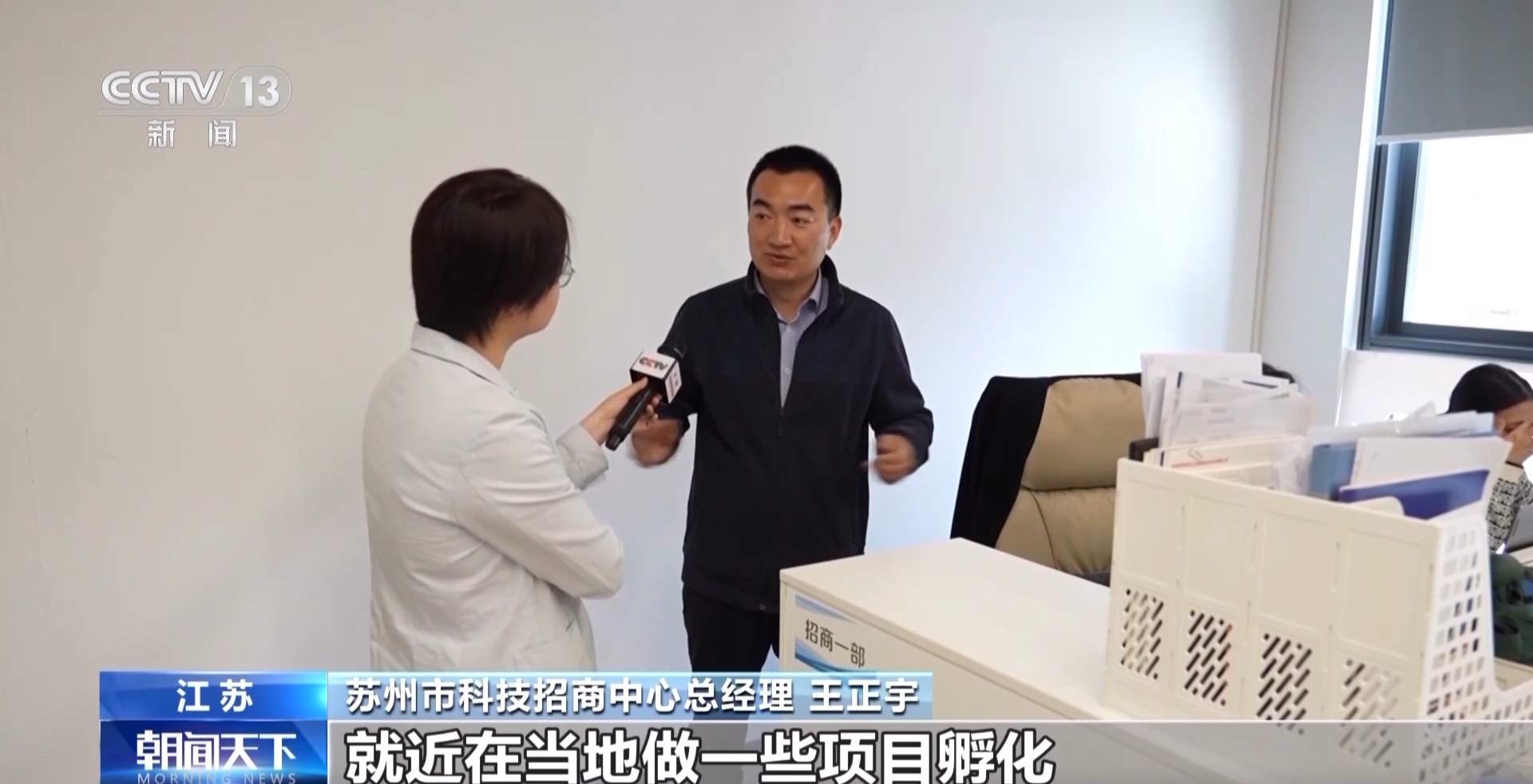 蘇州市科技招商中心總經(jīng)理 王正宇:方便這些高校的老師跟研究生,就近在當(dāng)?shù)刈鲆恍╉?xiàng)目的孵化。我們匹配一些載體、政策,包括資金的支持,條件成熟的時(shí)候,我們再讓他到蘇州來落地發(fā)展。