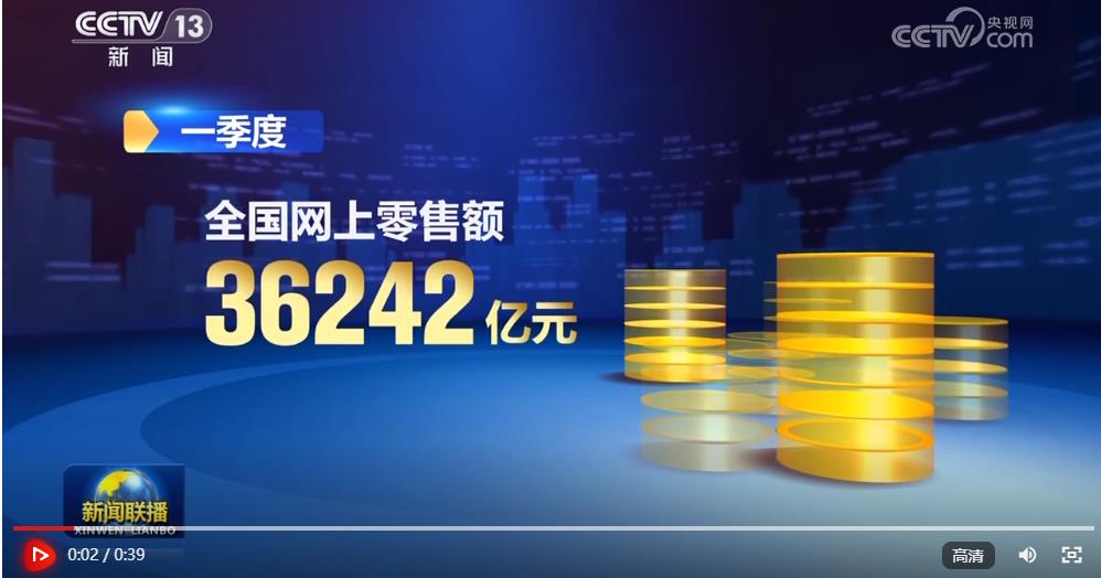 最新統(tǒng)計數(shù)據(jù)顯示,一季度,全國網(wǎng)上零售額36242億元,同比增長7.9%。其中,實物商品網(wǎng)上零售額29948億元,同比增長5.7%。