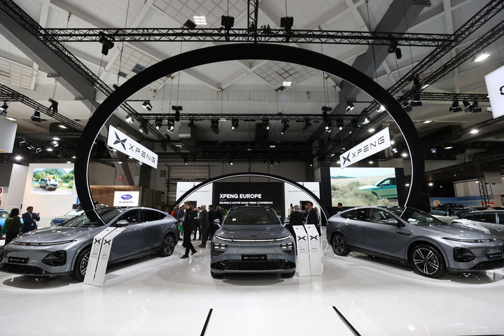 2025年1月10日,在比利時(shí)布魯塞爾,人們參觀2025布魯塞爾車展上的小鵬汽車展區(qū)。新華社記者 趙丁喆 攝
