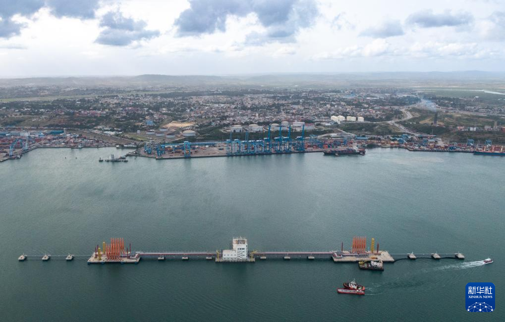 這是2024年8月15日在肯尼亞蒙巴薩拍攝的油碼頭和蒙巴薩港(無人機(jī)照片)。 新華社記者 王冠森 攝
