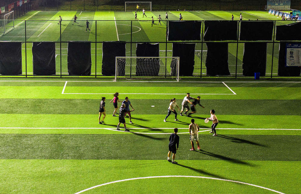 市民在成都市錦江體育公園足球場里玩飛盤。(資料圖)新華社記者 江宏景 攝