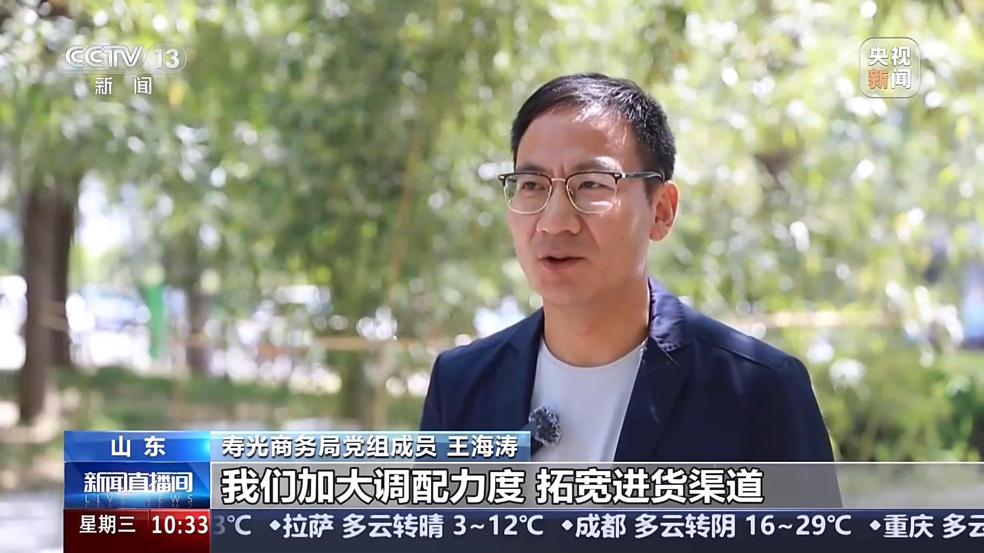壽光商務(wù)局黨組成員 王海濤:加大調(diào)配力度,拓寬進貨渠道,增加運輸頻次,蔬菜供應(yīng)充足。同時我們嚴格把控品質(zhì),加大蔬菜質(zhì)量檢測和溯源的力度,力求讓新鮮、安全的蔬菜及時送達各大市場,全力保障五一期間“菜籃子”安全。