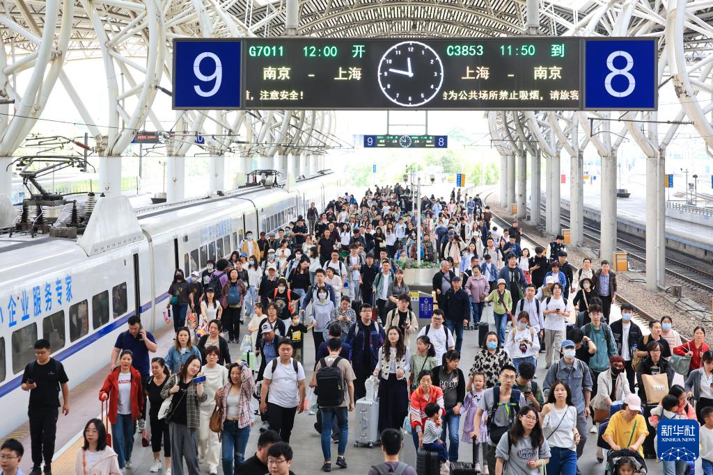 4月30日,旅客在南京火車站下車出站。新華社發(fā)(蘇陽(yáng) 攝)