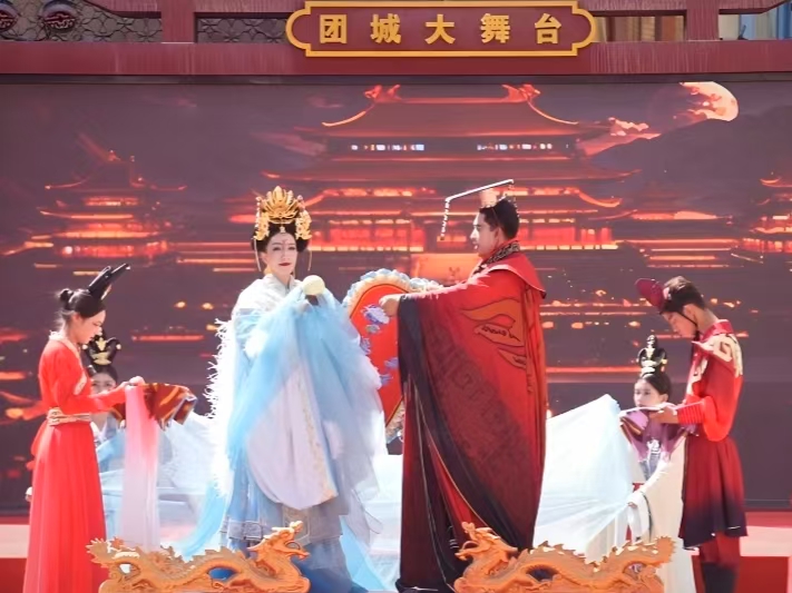 5月1日上午,新疆和田地區(qū)和田團(tuán)城、墨玉老城兩大景區(qū)同步舉行盛大的開(kāi)城儀式。在和田團(tuán)城,和田市文工團(tuán)與新玉演藝集團(tuán)聯(lián)袂演繹新編沉浸式舞劇《西巡傳說(shuō)》。作為開(kāi)城儀式的重頭戲,舞劇《西巡傳說(shuō)》以《山海經(jīng)》、《穆天子傳》及《竹書(shū)紀(jì)年》等歷史文獻(xiàn)記載作為參考,再現(xiàn)周穆王西巡的繁華盛景。徜徉在特色的民居建筑間,游客可偶遇身著熒光色改良艾德萊斯綢服飾走秀的青年模特,觀看到各鄉(xiāng)鎮(zhèn)街道創(chuàng)排的音樂(lè)舞蹈表演。異彩紛呈的巡游活動(dòng)讓烏魯木齊游客馬金玲稱贊:“這里讓人來(lái)了還想來(lái)!”