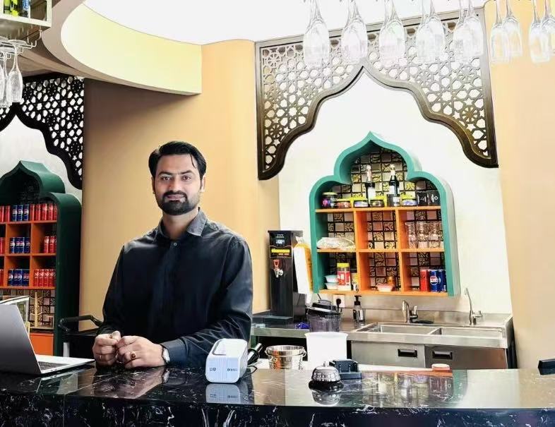我們在中國的網(wǎng)絡(luò)平臺(tái)上都會(huì)發(fā)送電子優(yōu)惠券,也有一些排行榜把我們店放上去,所以中國消費(fèi)者就會(huì)特意過來嘗試。我們有時(shí)也有學(xué)生折扣、會(huì)員卡的活動(dòng)。得益于中國的‘過境免簽’政策,我們店里有了更多的外國游客,一些外國游客可能不會(huì)用電子優(yōu)惠券,我們也有一些實(shí)體店的優(yōu)惠活動(dòng)。最近中國的一些‘促消費(fèi)’活動(dòng)我們也參加了,比如在美食節(jié)攤位上展示巴基斯坦美食,讓大家都嘗嘗。對于我們來說,不僅僅宣傳了我們的美食,還可以宣傳巴基斯坦文化?,F(xiàn)在我們在成都剛開了一家新店,未來我們還想在西安也開一家。