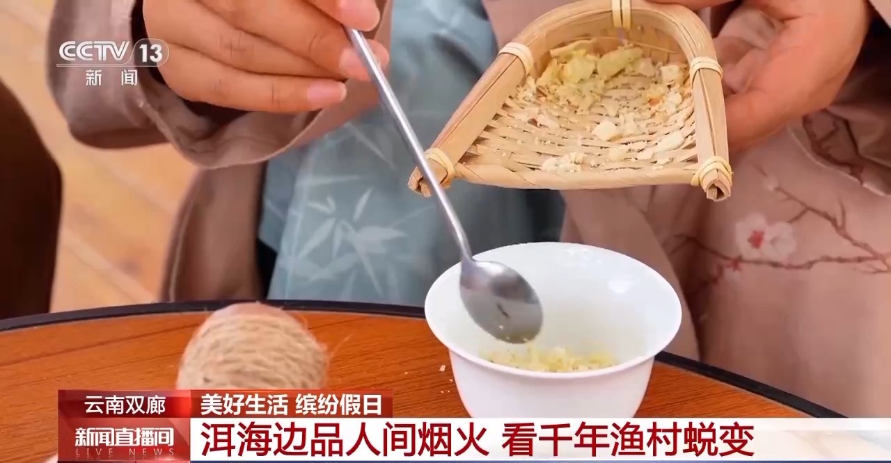 在云南大理雙廊,您既可以來一曲暢快的非遺舞蹈霸王鞭;也可以面朝洱海,品一品流傳千年的白族三道茶。本地乳扇和米花,漾濞的核桃仁,配上老紅糖水,這不是奶茶,而是“甜茶”。乳扇和米花是必選項(xiàng),其他材料隨心搭配,喝下去清甜可口。在第三道茶“回味茶”中,花椒、姜片、桂皮與茶葉同煮,看起來有些“黑暗料理”,但這是云南普洱茶最早的飲用方式,諸味俱全,回味無(wú)窮。