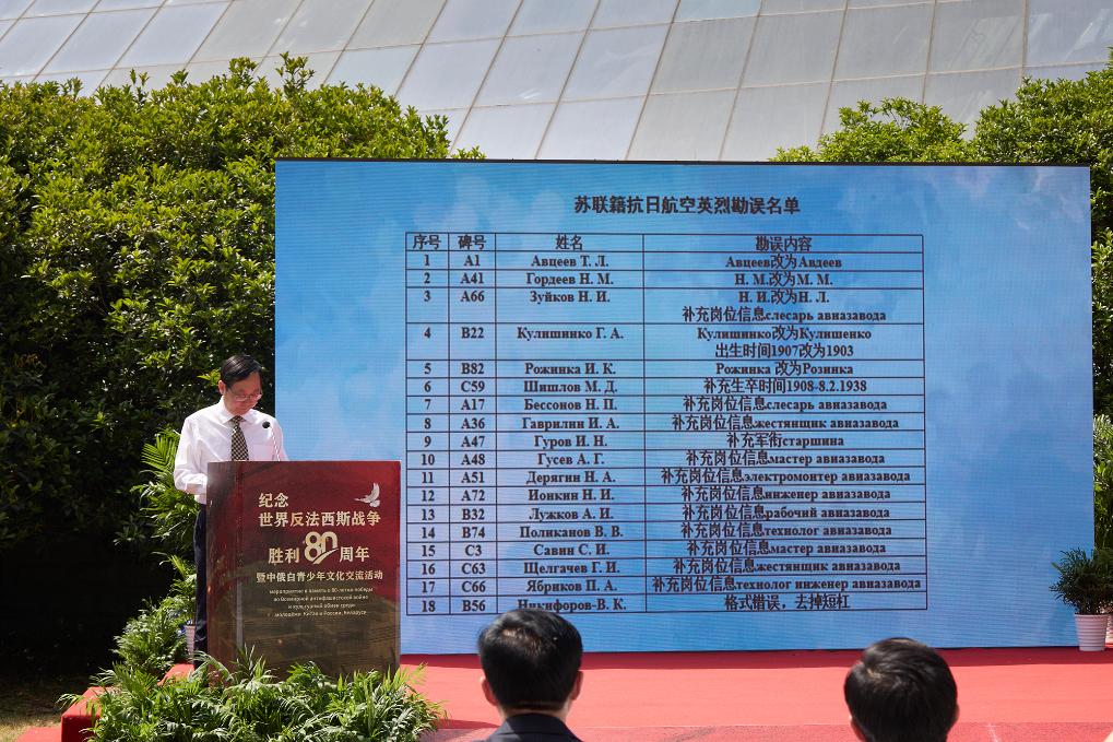 “我們期待與俄方相關部門、機構和民間組織一道,尋找更多蘇聯(lián)籍抗日航空英烈史料,讓這些為了正義與和平而犧牲的年輕人的事跡,永遠記載在歷史的豐碑上。”薛蓮說。
