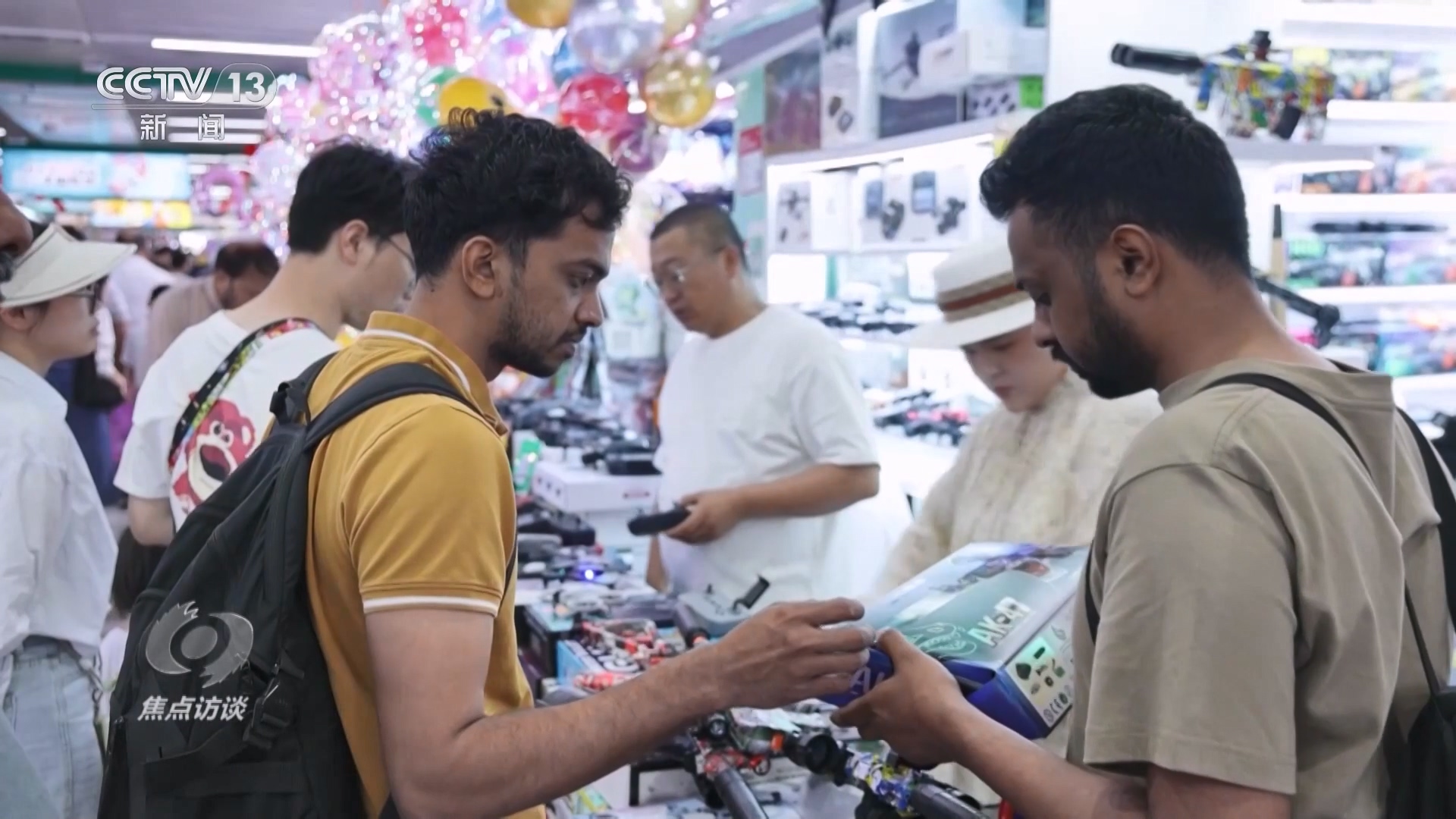 這些洋面孔中,除了定期往返的境外采購商,還有不少是因?yàn)槲覈谕瞥龅摹?40小時(shí)免簽”、離境退稅“即買即退”等政策,選擇“來華游”和“來華購”的。