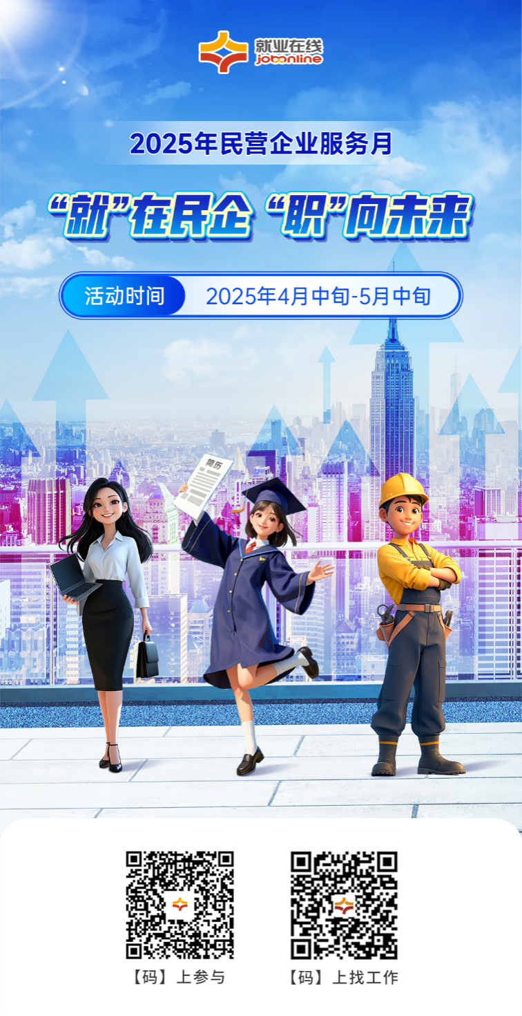 為支持民營(yíng)經(jīng)濟(jì)發(fā)展,促進(jìn)高質(zhì)量充分就業(yè),按照人力資源社會(huì)保障部等6部門(mén)關(guān)于開(kāi)展2025年民營(yíng)企業(yè)服務(wù)月活動(dòng)安排,“就業(yè)在線(xiàn)”平臺(tái)開(kāi)展2025年民營(yíng)企業(yè)服務(wù)月線(xiàn)上招聘求職服務(wù)活動(dòng),助力民營(yíng)企業(yè)招聘用工和廣大勞動(dòng)者求職就業(yè)。