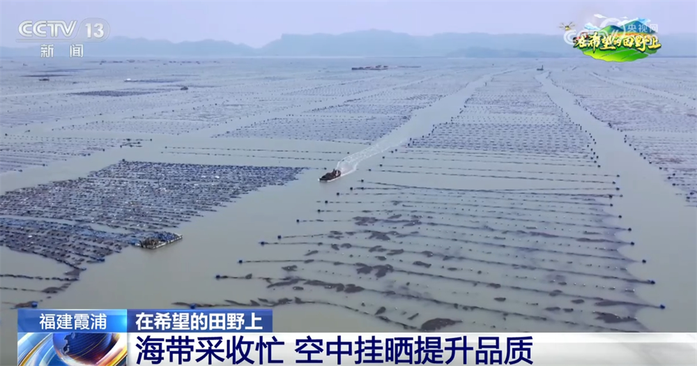 福建寧德市霞浦縣被譽為“中國海帶之鄉(xiāng)”,是我國海帶的主產(chǎn)區(qū)之一。這幾天,當(dāng)?shù)氐?5萬畝海帶迎來豐收,養(yǎng)殖戶們忙著將成品海帶收獲上岸,再運送到晾曬場晾曬,形成了獨特的“空中曬場”。