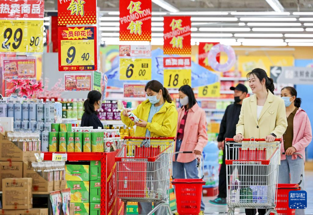 5月10日,消費(fèi)者在山東省棗莊市一家超市選購(gòu)商品。新華社發(fā)(孫中喆攝)