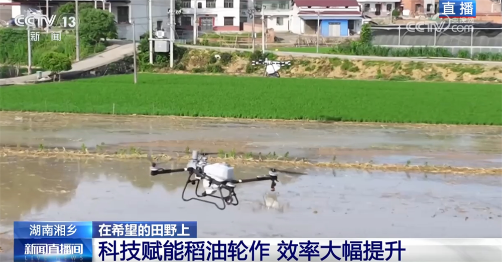 在這個階段,還有一件非常重要的工作就是施肥。眼下,施肥已經很少依靠人工了。現場,大型的農業(yè)無人機正在作業(yè),肥料均勻灑在田里。無人機還能做到自動避障、自動調節(jié)噴灑量,配備光譜儀還可以檢測莊稼的長勢,作業(yè)1畝地只需要不到20秒。