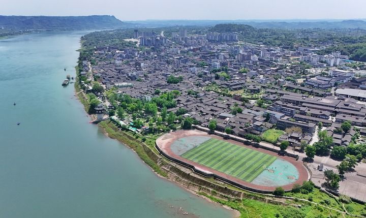 今天的李莊鎮(zhèn)上,位置最好的地方修成了李莊中學(xué)。學(xué)校操場坐落在長江邊,白天供孩子們運(yùn)動(dòng),夜里向公眾開放。