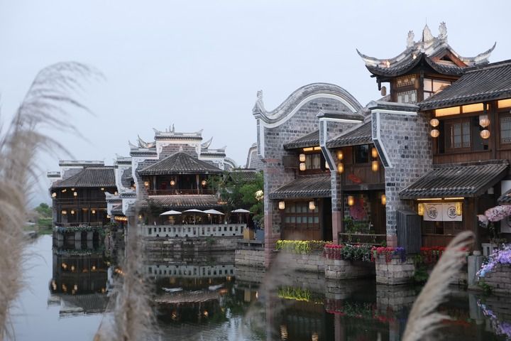 傍晚時(shí)分,李莊古鎮(zhèn)月亮田華燈初上(4月23日攝)。新華社記者 張雅雯 攝