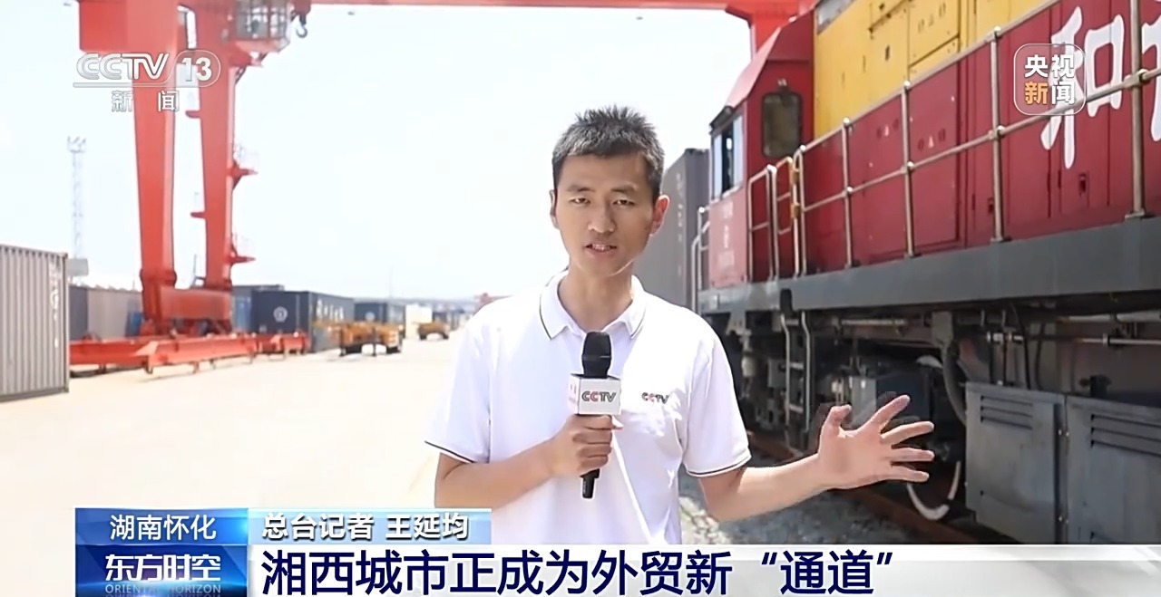 總臺記者 王延均:這是一條即將發(fā)往老撾的貨運專線,一共有70標箱,里面滿載著湖南省內(nèi)生產(chǎn)的新能源汽車、小家電、農(nóng)機、太陽能板等貨物。預(yù)計三天左右的時間就能把這些貨物從懷化運到老撾萬象。目前,在這里,僅發(fā)往老撾萬象的貨運專列每周都會有三列。