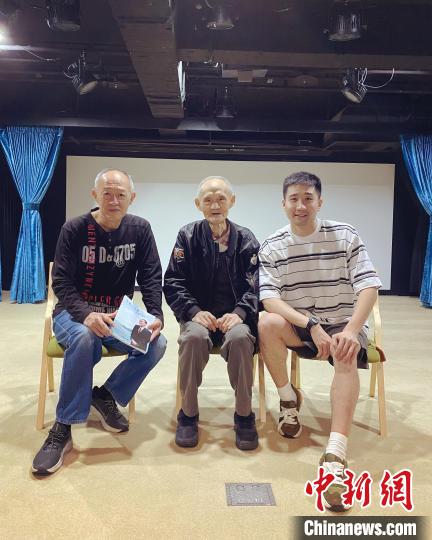 2023年5月8日,紀錄片《日暮·歸鄉(xiāng)》導演楊正濃與臺灣老兵金英次子金士杰(左一)、“感動中國”人物高秉涵(中)在臺北交流。(片方供圖)