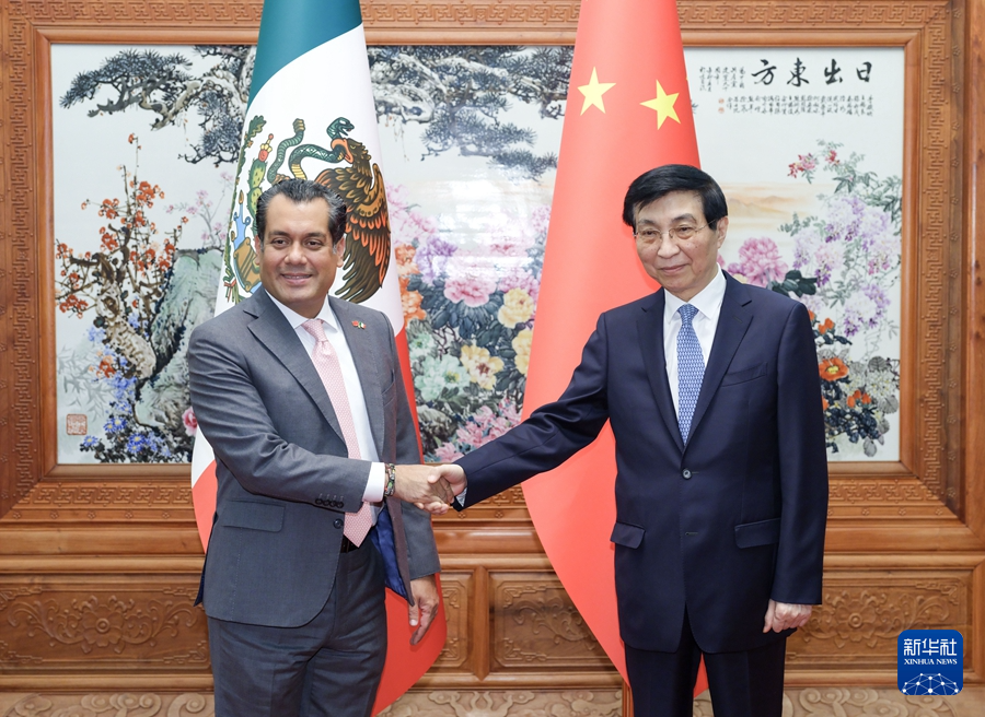 全國(guó)政協(xié)主席王滬寧20日在京會(huì)見墨西哥眾議長(zhǎng)古鐵雷斯。