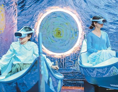 4月20日,游客在山東青島世博園XR梵高數(shù)字藝術(shù)體驗(yàn)館進(jìn)行數(shù)字產(chǎn)品體驗(yàn)。張 鷹攝(人民視覺)