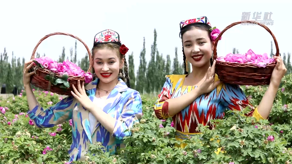 新疆和田地區(qū)于田縣地處塔克拉瑪干沙漠南緣,素有“玫瑰之鄉(xiāng)”的美譽。眼下,于田縣7萬余畝玫瑰花迎來采摘季,朵朵玫瑰競相綻放,空氣中到處彌漫著玫瑰的花香。村民們一大早就忙著采摘玫瑰花。