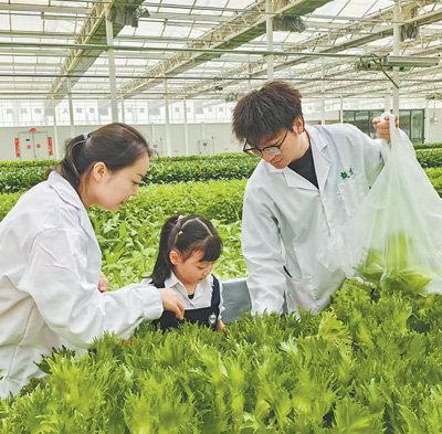 庫(kù)車市甬庫(kù)同心村智慧農(nóng)業(yè)植物工廠技術(shù)員帶領(lǐng)游客參觀。 王紅麗攝