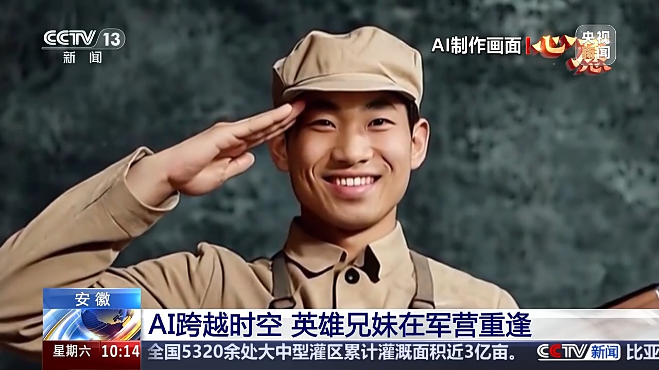 相見,是間隔在生死之間的人們最難以實現(xiàn)的夙愿??偱_記者送給了李家英老人一份特殊的禮物,借助總臺的AI技術(shù),讓同是軍人的兄妹倆在軍營實現(xiàn)了跨越時空的團聚。
