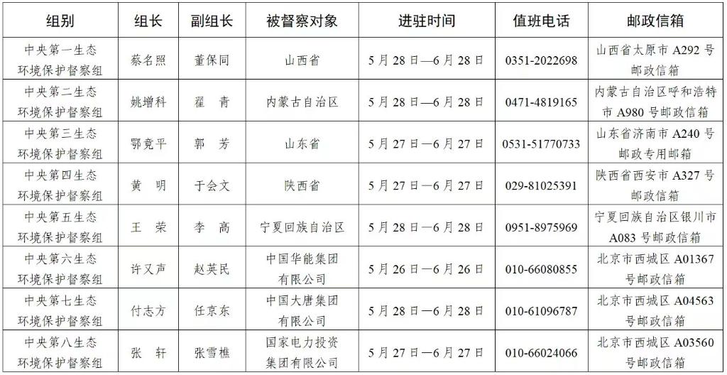 第三輪第四批中央生態(tài)環(huán)境保護(hù)督察進(jìn)駐一覽表(圖片來源:生態(tài)環(huán)境部)