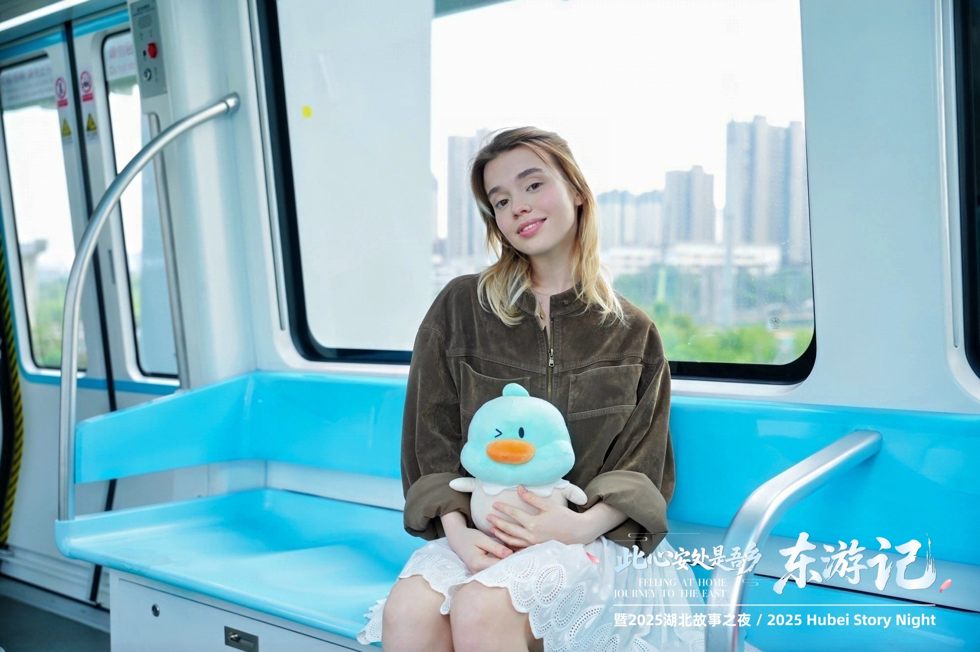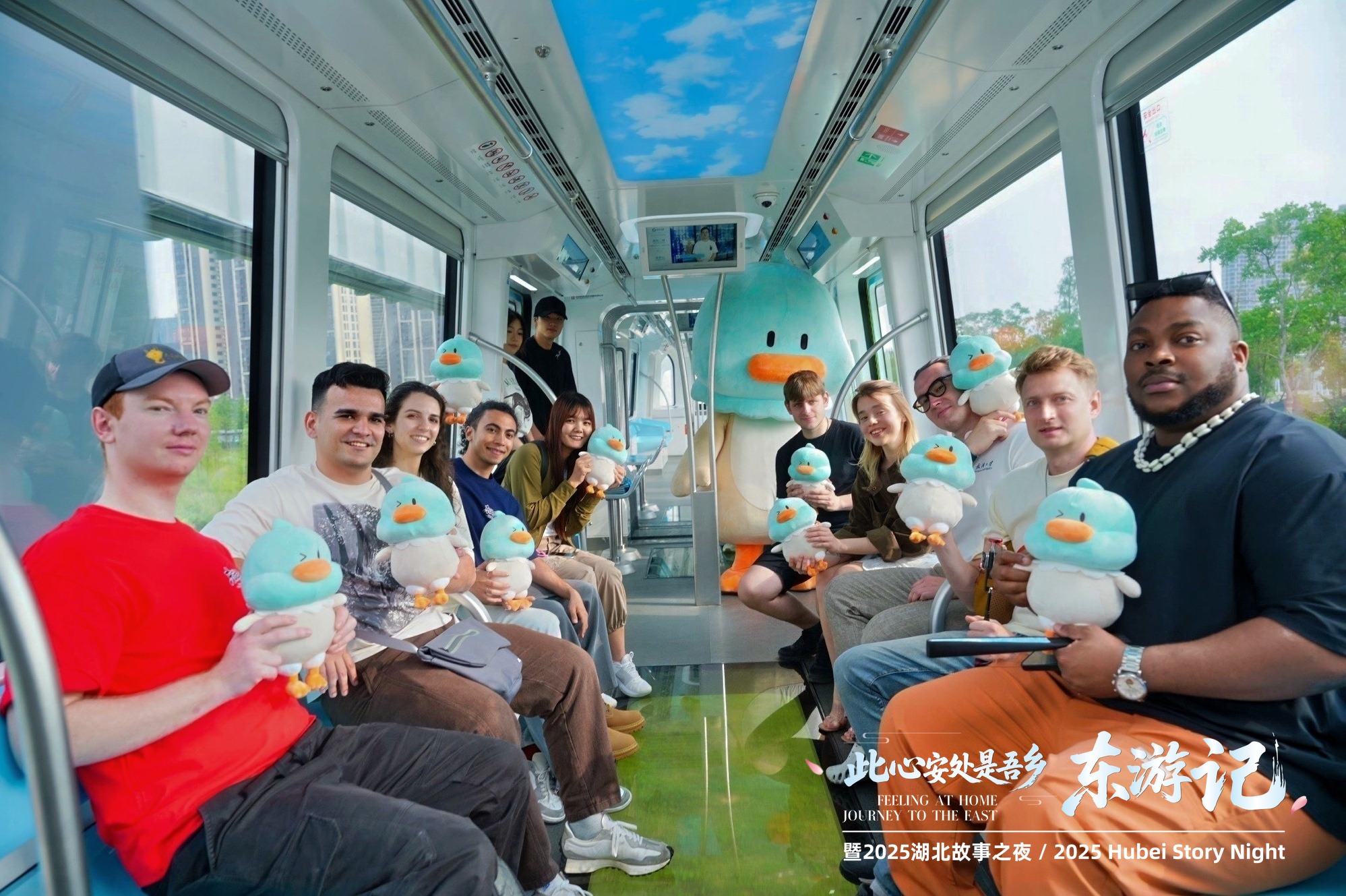 武漢新晉網(wǎng)紅打卡地怎么少得了光谷空軌,在吉祥物青青鴨的帶領(lǐng)下,體驗官們踏上了空中交通之旅。270°全景視窗將城市天際線變成流動畫卷,無人駕駛系統(tǒng)在空中穿行如科幻大片。這種新奇的乘車體驗引得大家連連贊嘆,俄羅斯留學生可欣興奮的說,“我感覺自己飛起來了,像鳥一樣飄在空中。”
