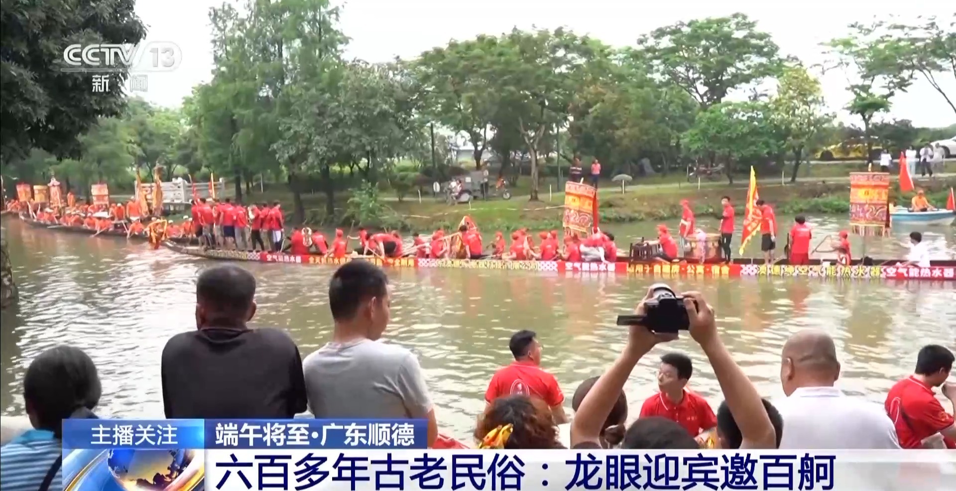 來自珠三角的船只整齊排列在河涌之上,進(jìn)行一年一度的“龍眼點(diǎn)睛”。