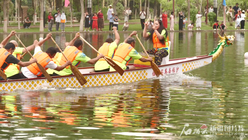 沙雅縣渭干河生態(tài)文化旅游景區(qū)同樣熱鬧非凡。沙雅縣11支鄉(xiāng)鎮(zhèn)代表隊在該縣“濃情端午 粽享美好”第三屆龍舟大賽中劈波斬浪,數(shù)千名觀眾吶喊聲響徹河岸。景區(qū)特設(shè)的民俗集市上,粽子、烤包子、羊肉串等30余種美食香氣撲鼻,讓游客在觀賽之余大飽口福。沙雅縣古勒巴格鎮(zhèn)代表隊隊員李金花說:“今年是我第一次參加龍舟比賽,我們隊發(fā)揮得還不錯,大家也感受到了團隊的力量。通過這次比賽,不僅鍛煉了身體,也傳承和弘揚了中華優(yōu)秀傳統(tǒng)文化。”