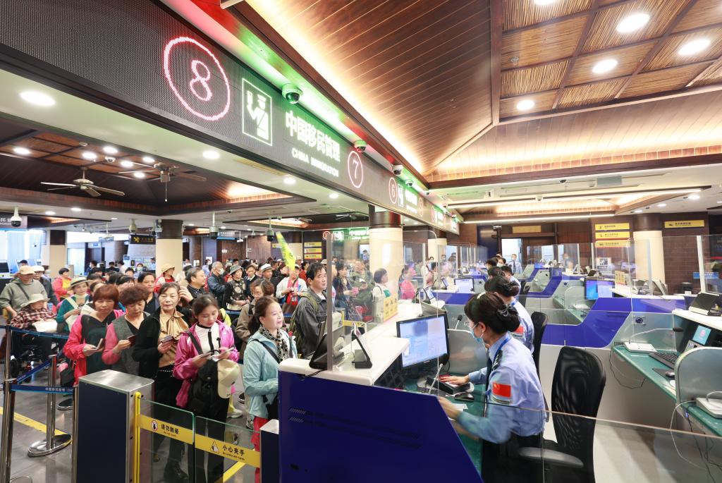 1月3日,在三亞鳳凰島國(guó)際郵輪港口岸,邊檢部門為郵輪旅客辦理通關(guān)手續(xù)。(楊冠宇 攝)
