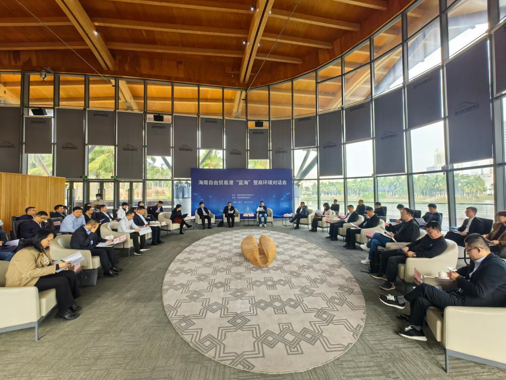 這是2025年1月9日舉行的海南自由貿(mào)易港“藍(lán)海”營(yíng)商環(huán)境對(duì)話會(huì)現(xiàn)場(chǎng)。新華社記者吳茂輝 攝