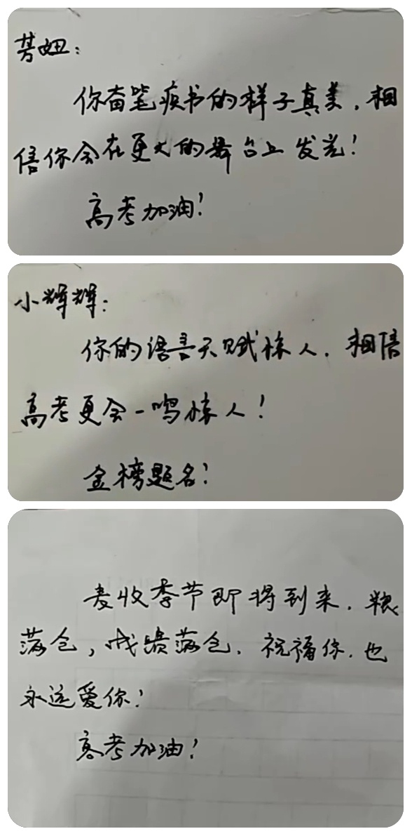 老師將自己手寫的祝福