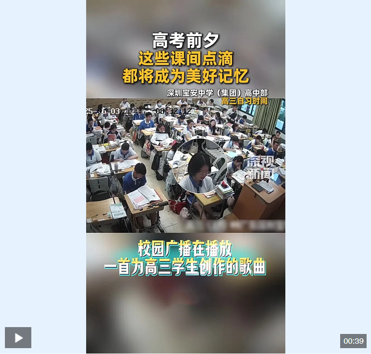 廣播突然響起為高三學(xué)生創(chuàng)作的歌曲