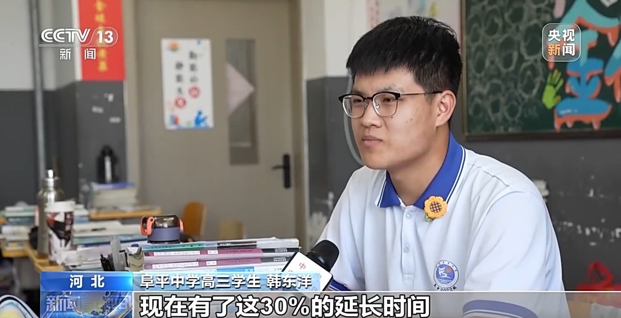 河北省今年為360名殘疾考生提供了包括延長(zhǎng)考試時(shí)間、提供特殊試卷、配備引導(dǎo)員等必要支持和合理便利,確保每一位殘疾考生都能平等、自信地參加考試??忌n東洋,因右手殘疾,用左手書(shū)寫,速度較常人會(huì)慢三分之一。今年高考,經(jīng)申請(qǐng)?jiān)u估,他每科的考試時(shí)間可以延長(zhǎng)30%。這份寶貴的“時(shí)間禮包”,讓他心里踏實(shí)了不少。