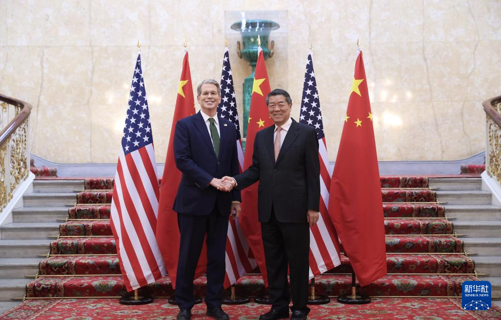 當(dāng)?shù)貢r(shí)間6月9日,中共中央政治局委員、國(guó)務(wù)院副總理何立峰與美方在英國(guó)倫敦開始舉行中美經(jīng)貿(mào)磋商機(jī)制首次會(huì)議。這是會(huì)談前,何立峰與美國(guó)財(cái)政部長(zhǎng)貝森特握手。新華社記者 李穎 攝